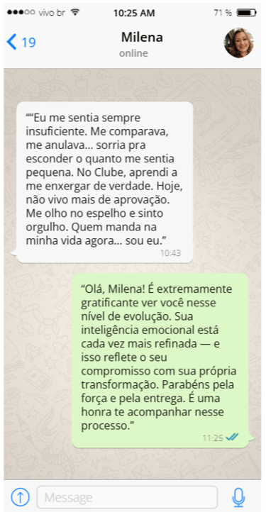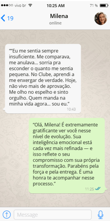 O Clube é um espaço exclusivo de transformação onde você recebe conteúdos, exercícios e mentorías para fortalecer sua mente, controlar emoções e construir relacionamentos mais saudáveis e duradouros.