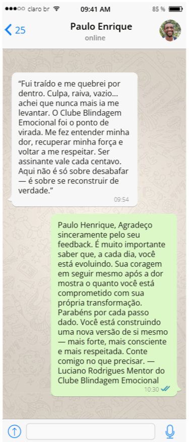 É exatamente por isso que o Clube Blindagem Emocional existe: um ambiente preparado para quem quer evoluir, com ferramentas, orientação e suporte capazes de transformar intenção em resultado real.